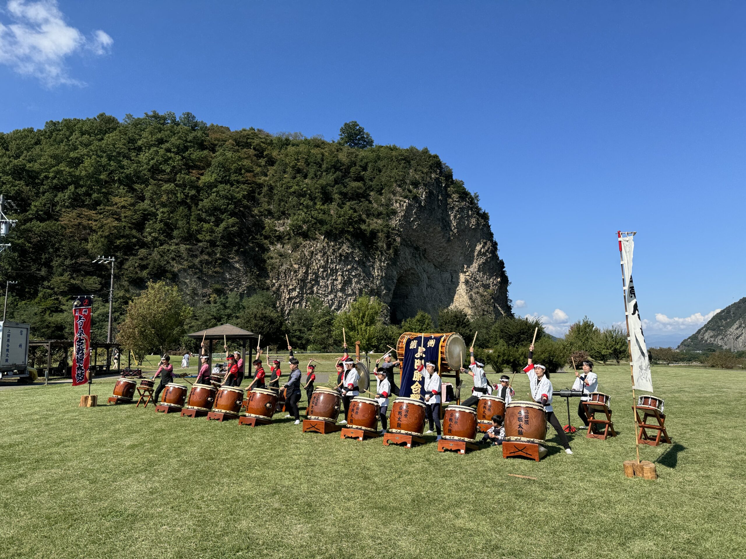 ここから望む日本百景・奇岩「岩鼻」は、高さ100mを誇る地域のシンボルで