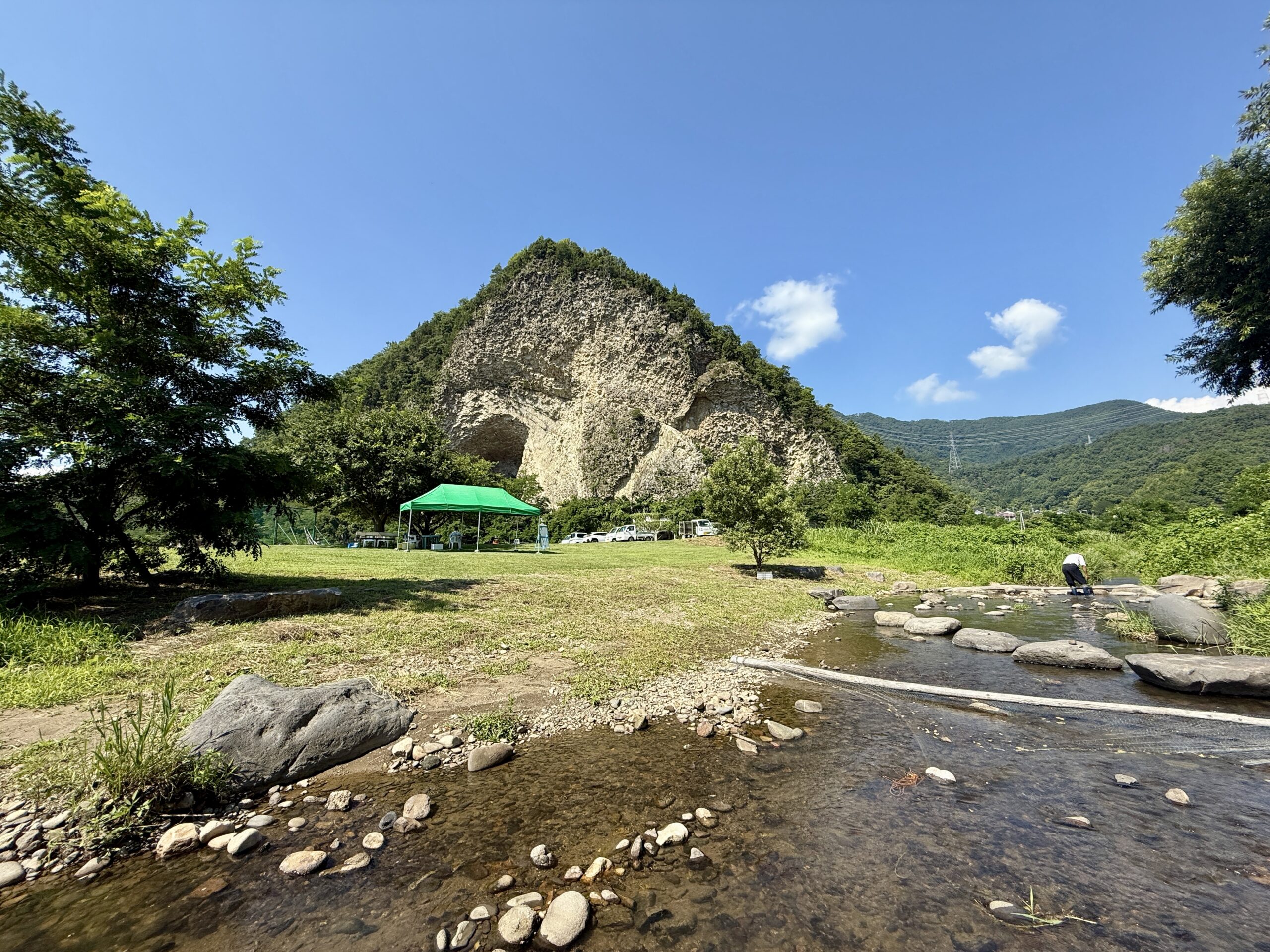 ここから望む日本百景・奇岩「岩鼻」は、高さ100mを誇る地域のシンボルで、
