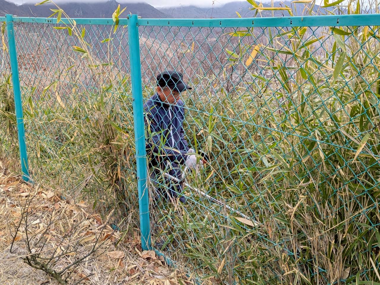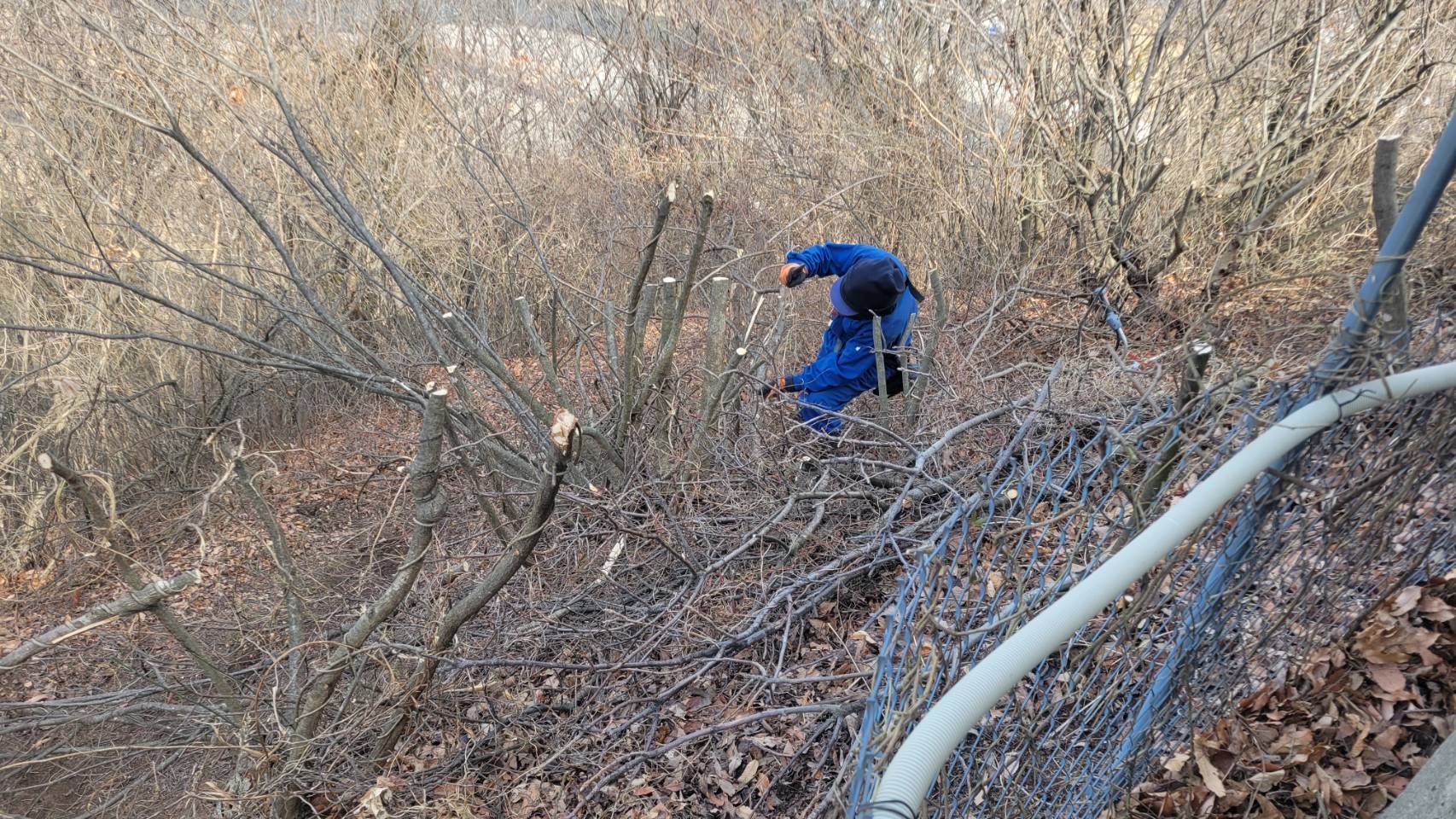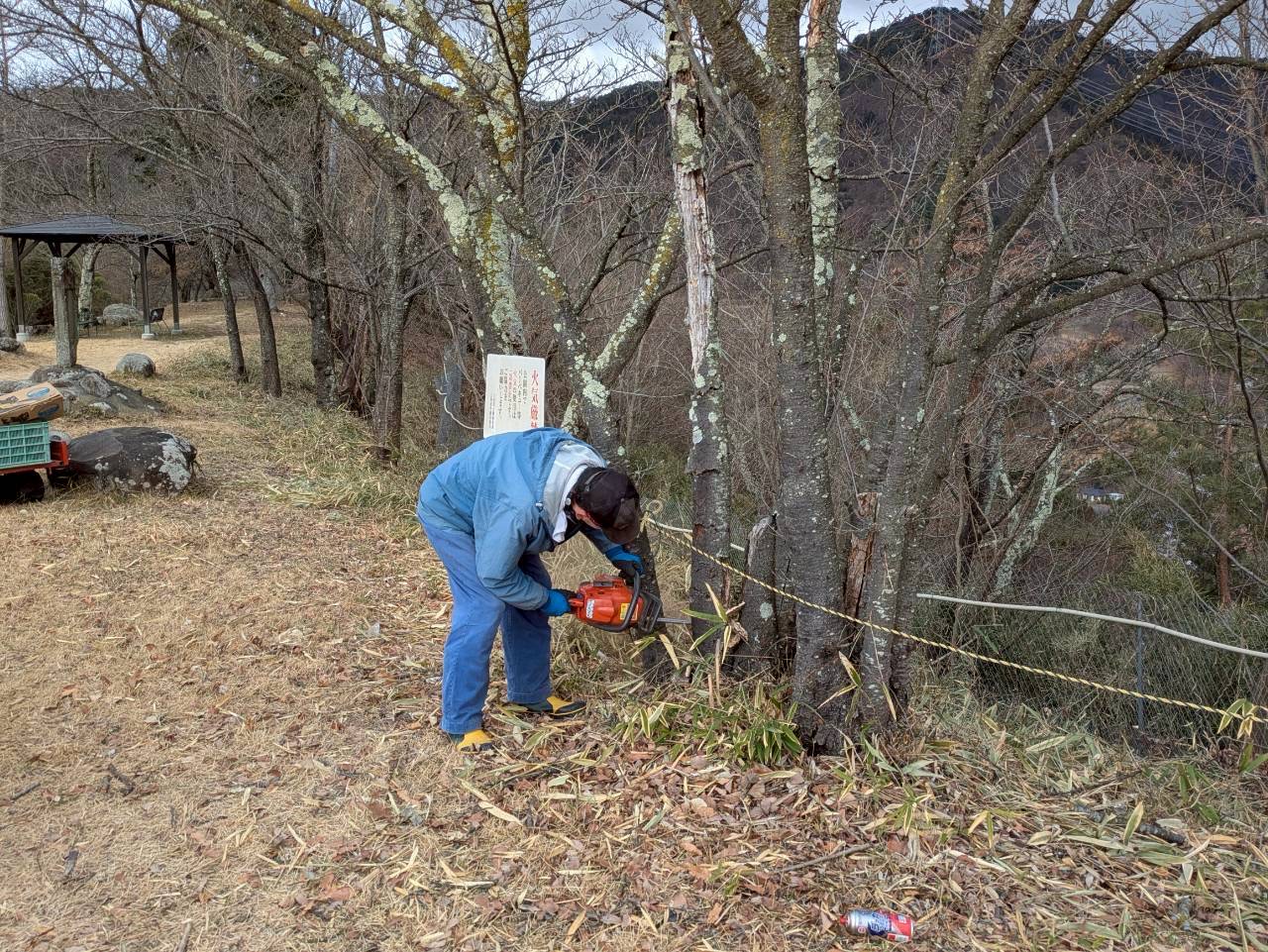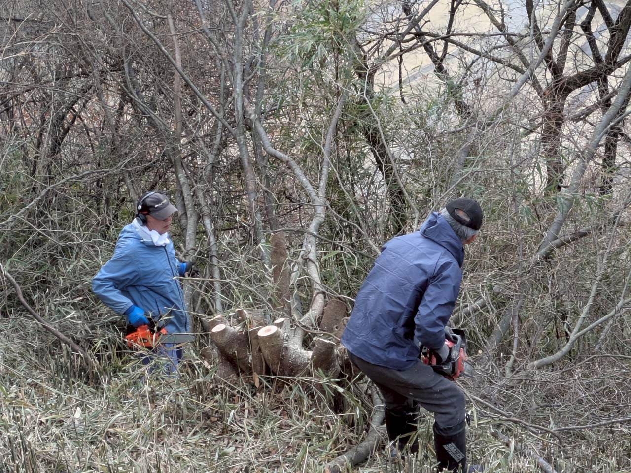 フェンスの向こう側で伸びた草の除草作業をはじめ、樹木の剪定や倒木の手入れなどが行われました。