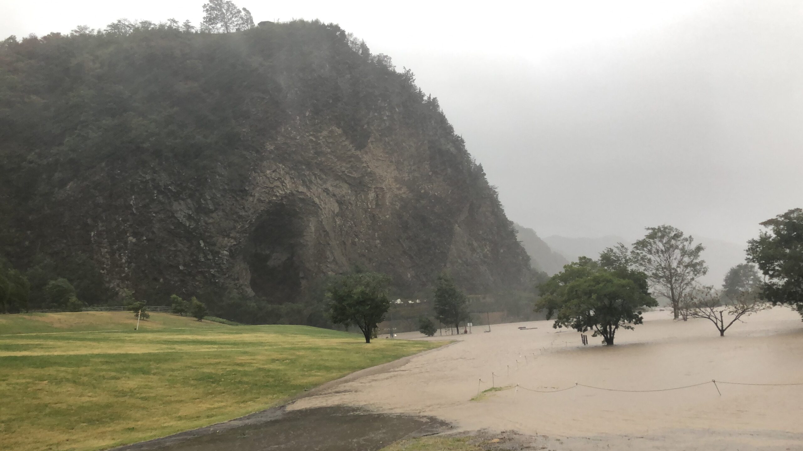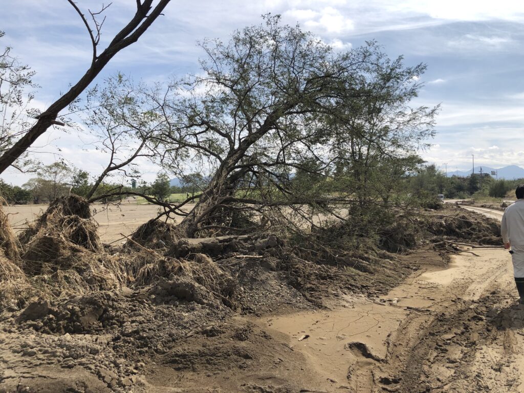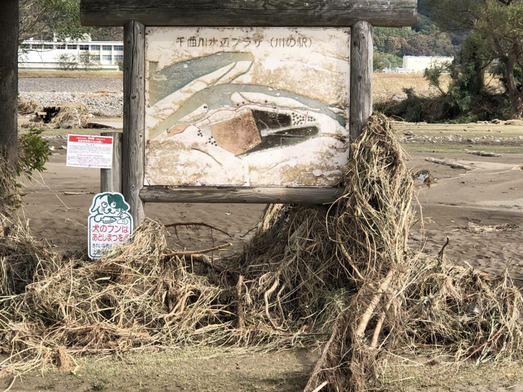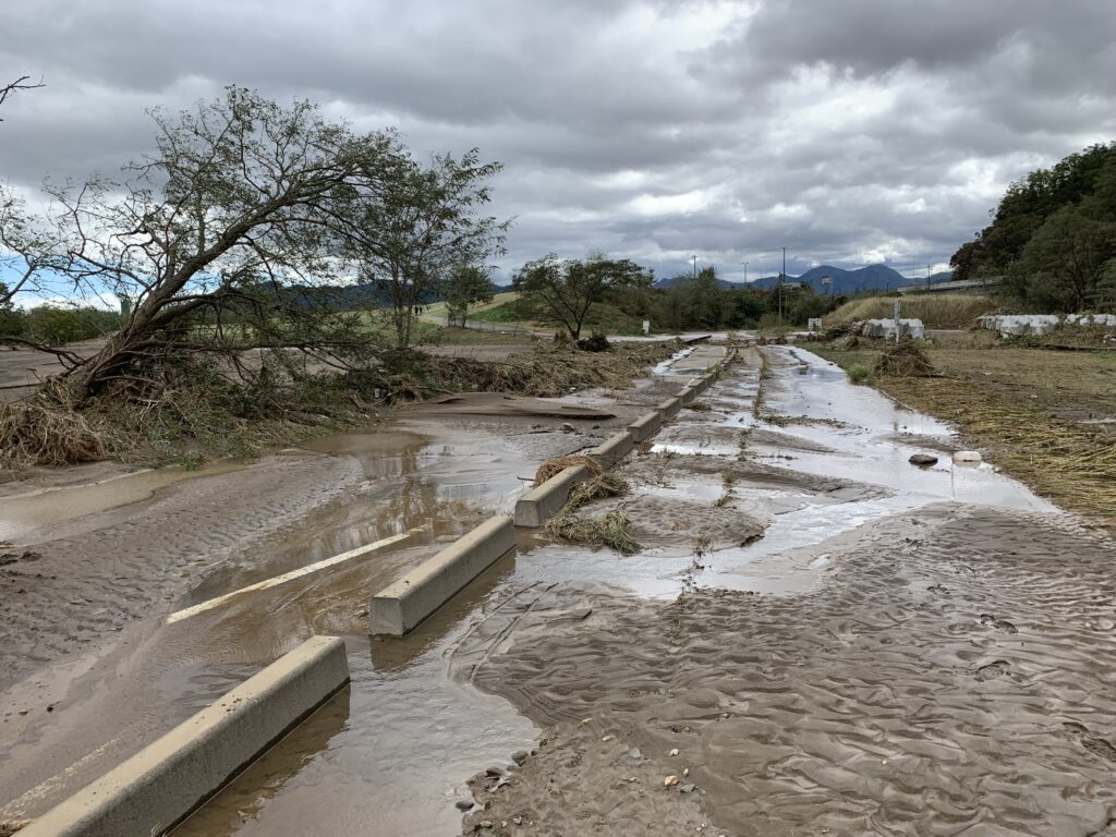 千曲川の増水に伴い冠水の恐れがあったため、自治会長と連絡を取り、園路の通行止めを実施しました。