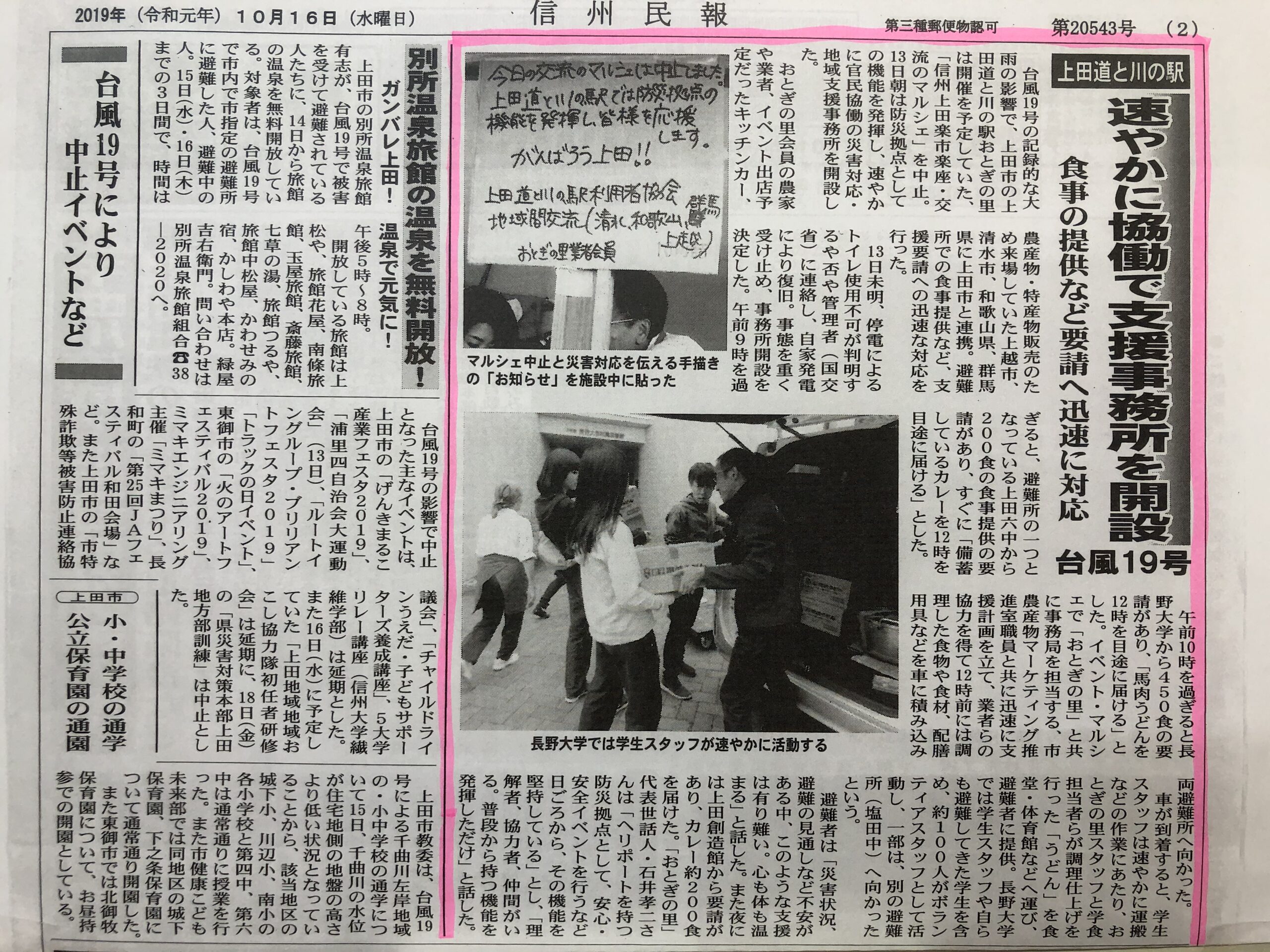 広域避難所から給食の要請があり、職員、生産者、遠方からの出展者(当日は信州マルシェ開催日だったため)、市職員、会員一同が連携し、850食を提供しました。
